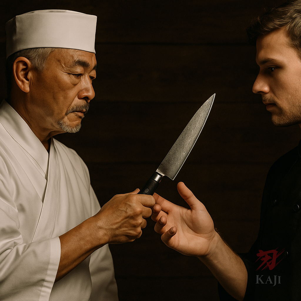 Chez Kaji Couteaux, nous voyons le couteau comme un passage : celui du premier vrai outil qui change votre façon de cuisiner. Inspirés par l’artisanat japonais, nous sélectionnons des lames qui portent en elles précision, émotion et héritage.